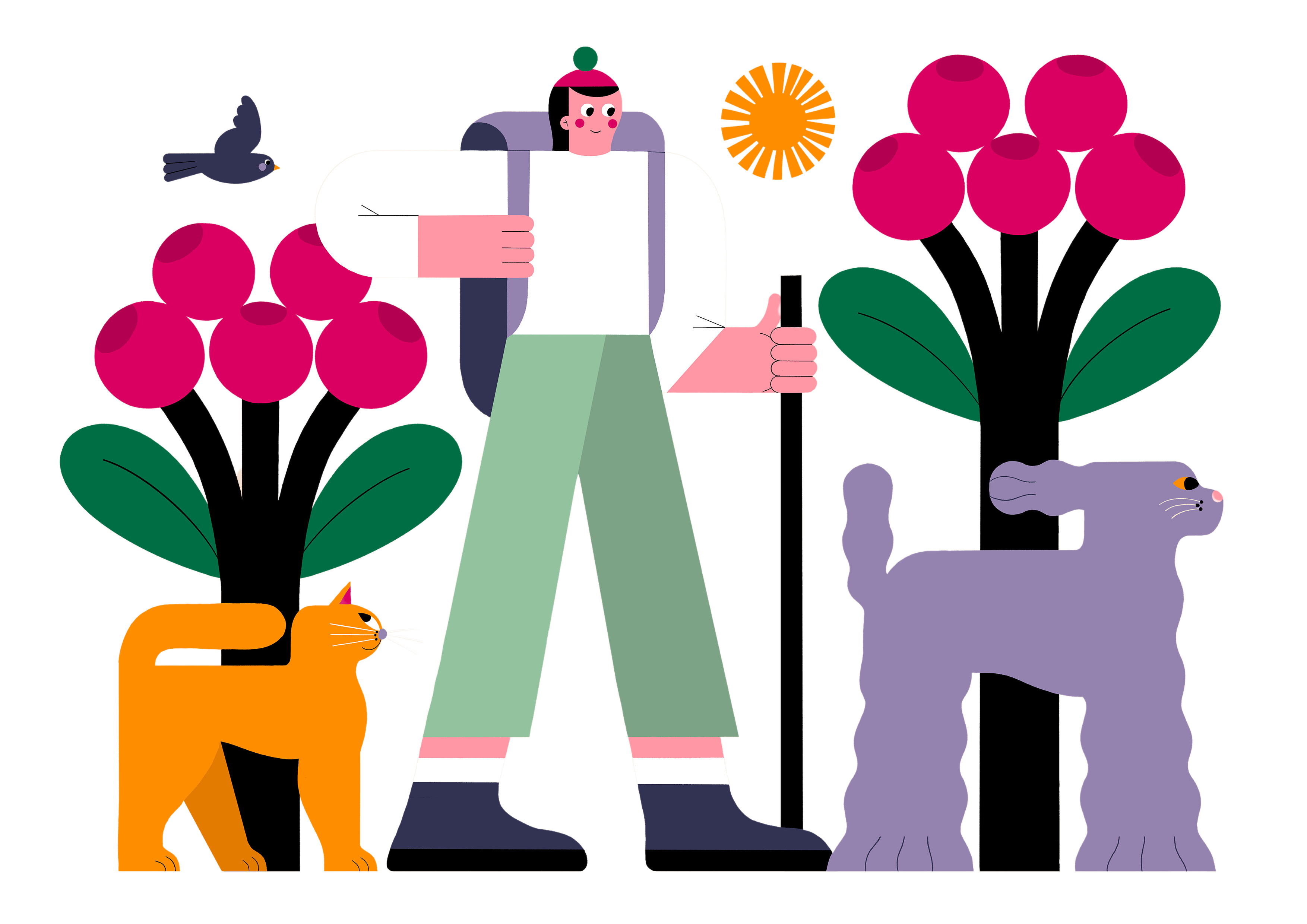 • Valkoinen t-paita värikkäällä ”Metsäretki” kuvituksella